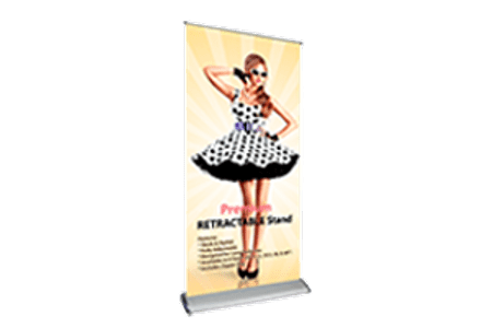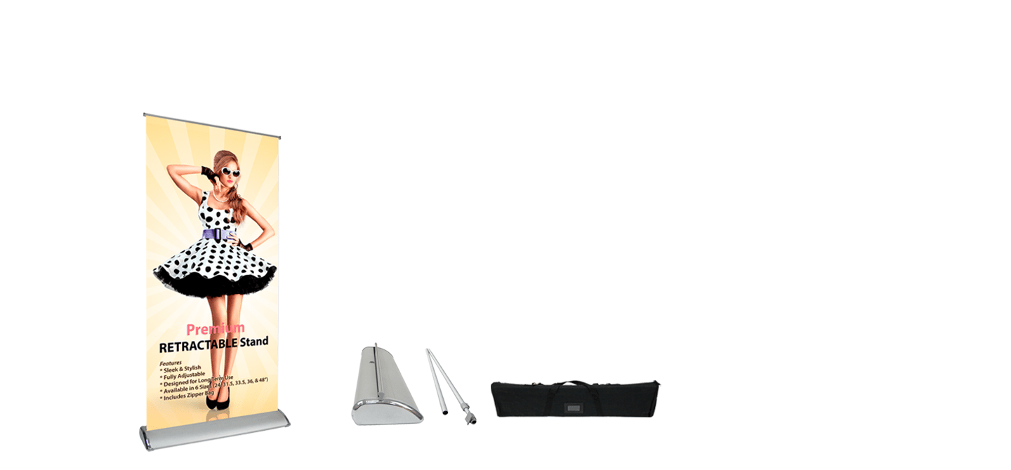 Retractable banners pull out of and retract into an aluminum stand or base for maximum portability. This feature makes these banners the ultimate signage solution for trade shows, events and conferences. Our retractable banners include the option of printing your graphic and messaging on display fabric or PET material. The banner stands and lights are available for purchase.